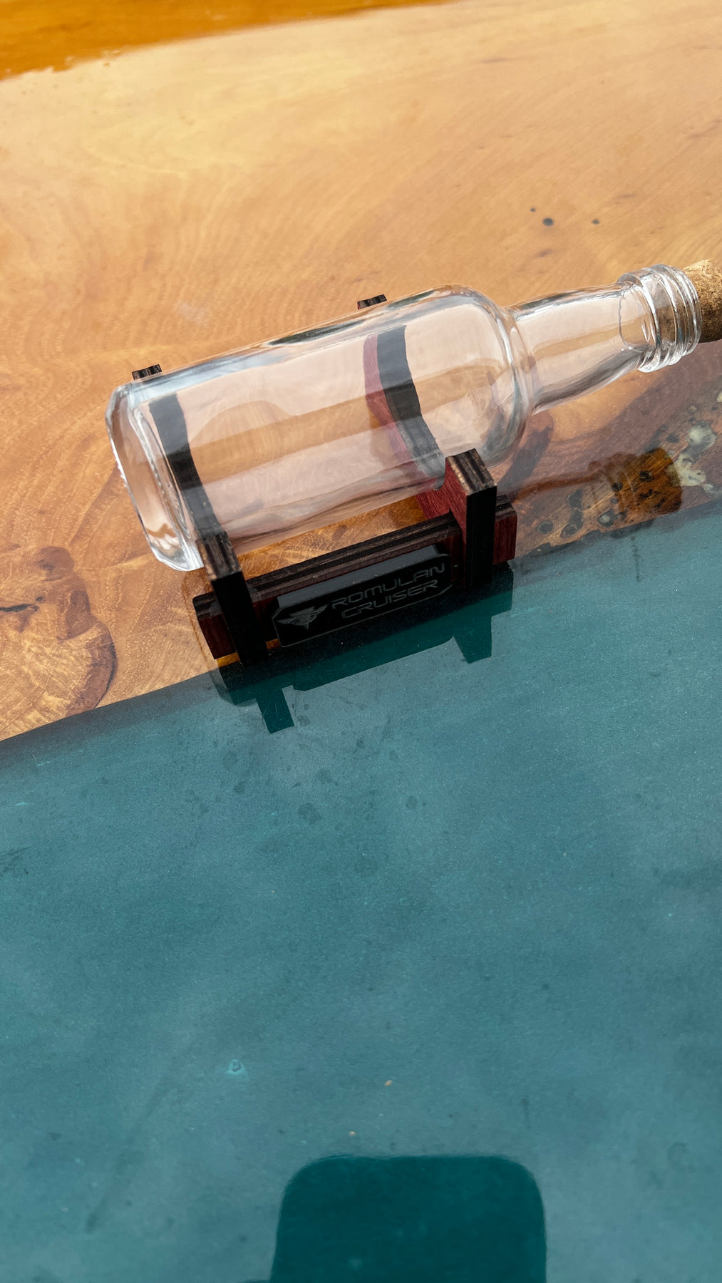 Romulan cruise cloaked in a bottle 😉. Comes as shown. This is a great gag gift for a Star Trek fan or funny conversation piece for yourself.